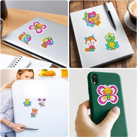 Les autocollants colorés et scintillants peuvent être utilisés sur divers objets, y compris des ordinateurs portables, des réfrigérateurs ou des coques de téléphone.