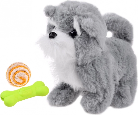 Le chiot gris interactif est un excellent jouet pour les enfants qui veulent plus qu’une simple peluche. Ce chiot non seulement aboie et couine, mais il avance et recule, bouge la tête, ouvre et ferme la gueule et remue la queue. Il est en outre accompagné d’accessoires ludiques — un os souple en caoutchouc et une balle colorée. • Interaction et mouvement • Beaucoup d’amusement et d’activités variées • Développe la créativité et l’imagination des enfants