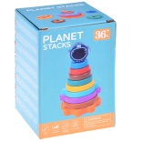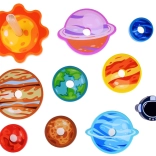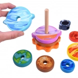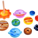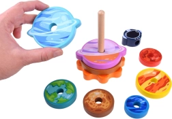Les disques représentent les planètes et la base le soleil, ce qui fait du puzzle une expérience unique qui développe la créativité des enfants.
