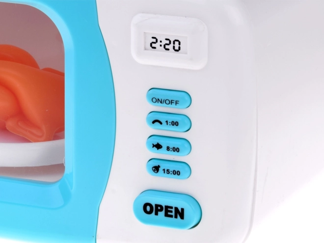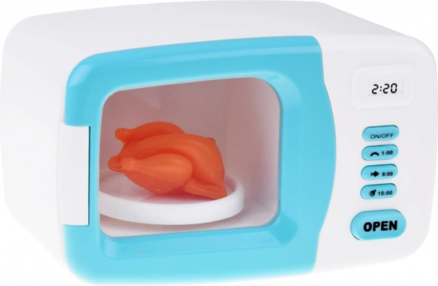 Le jeu amusant aide les enfants à développer des compétences motrices fines et une conscience des activités ménagères. Le micro-ondes est fabriqué en plastique avec une combinaison de couleurs blanc-bleu et est une réplique réaliste d'un appareil de cuisine.