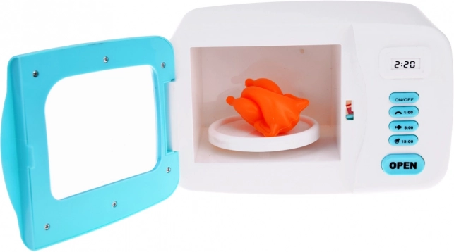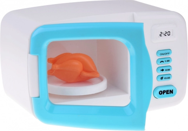 A l'intérieur du four à micro-ondes se trouve un modèle en plastique de poulet, qui tourne sur le plateau lors de l'allumage. L'intérieur du four s'illumine en rouge pendant le fonctionnement simulé, ajoutant à l'authenticité de l'expérience. Ce produit stimule l'imagination des enfants et encourage leur intérêt pour la cuisine et la préparation des repas.