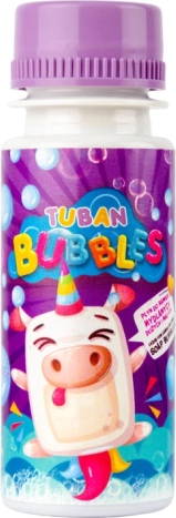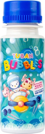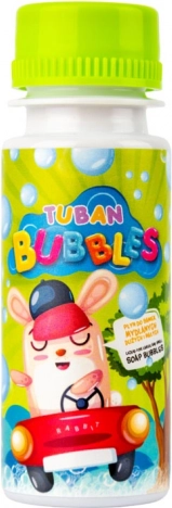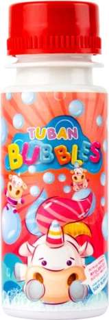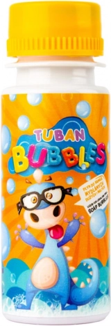 La solution amusante pour bulles de savon TUBAN, en pratique bouteille de 60 ml, crée de petites bulles résistantes. Le bouchon comprend une baguette à double anneau, idéale pour les enfants dès 3 ans, les fêtes et les jeux en plein air. Les designs sont envoyés aléatoirement.