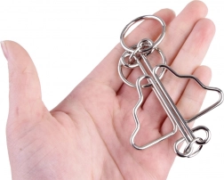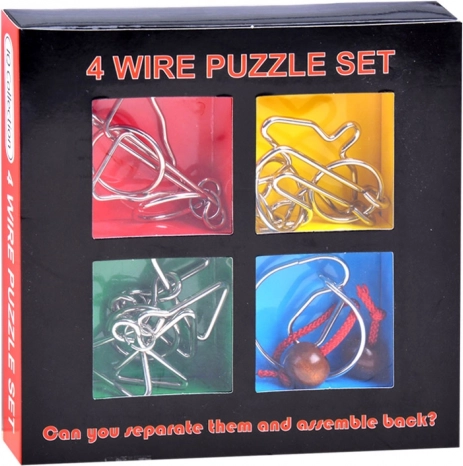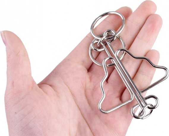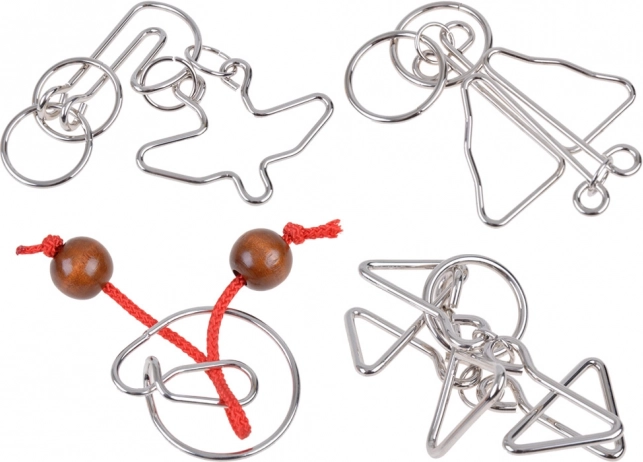 L’ensemble comprend plusieurs types de casse-têtes en fil de fer aux constructions différentes – des anneaux et cercles jusqu’à des formes thématiques. Chaque pièce est un défi unique.