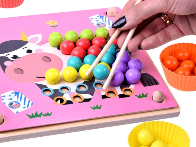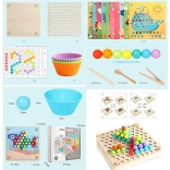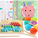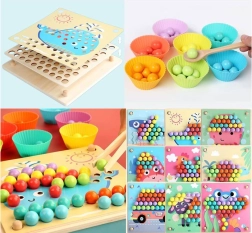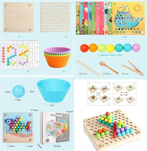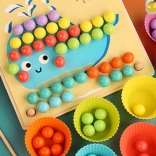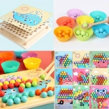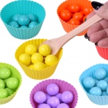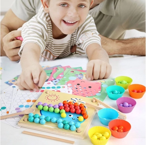 Les coupelles et billes colorées favorisent le tri et la discrimination visuelle. Les enfants comprennent facilement les couleurs, les motifs et les premiers calculs.