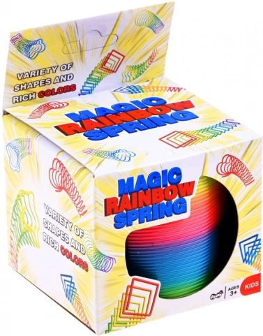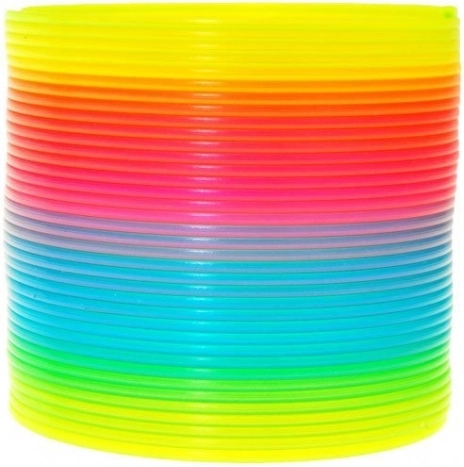 Un ressort perlé arc-en-ciel d’un diamètre d’environ 7,5 cm et d’une hauteur de 6,5 cm offrira beaucoup de divertissement pendant le jeu.
