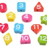 Le set avec chiffres à enfiler sur un cordon développe la coordination, la patience et la concentration, tout en offrant de nouvelles possibilités de jeu.