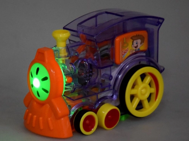 Le coffret comprend 80 pièces de dominos multicolores, un distributeur pour un remplissage facile, un connecteur cactus décoratif et le train lui-même avec des éléments transparents révélant son mécanisme. Le set développe la motricité fine, la patience et la perception spatiale – idéal pour jouer seul ou à plusieurs.