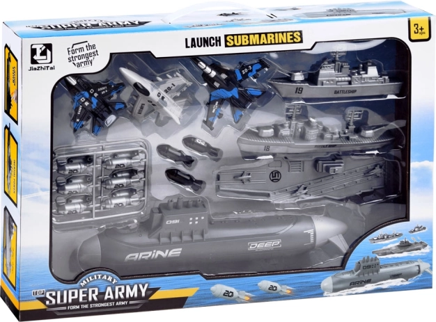 Ce set complet de matériel militaire plonge les enfants dans l’univers des opérations navales avec soutien aérien. Grâce à la combinaison d’un sous-marin, de navires et de chasseurs, ils peuvent créer leurs propres scénarios, planifier des stratégies et développer leur imagination. Les formes réalistes, les couleurs sobres et les marquages renforcent l’atmosphère de bataille navale.