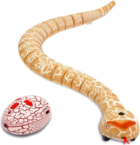Le serpent télécommandé imite les mouvements d’un véritable reptile – il ondule, tire la langue et remue la queue, offrant un réalisme saisissant. La télécommande en forme d’œuf est intuitive et, grâce à sa taille compacte, tient confortablement même dans les petites mains.