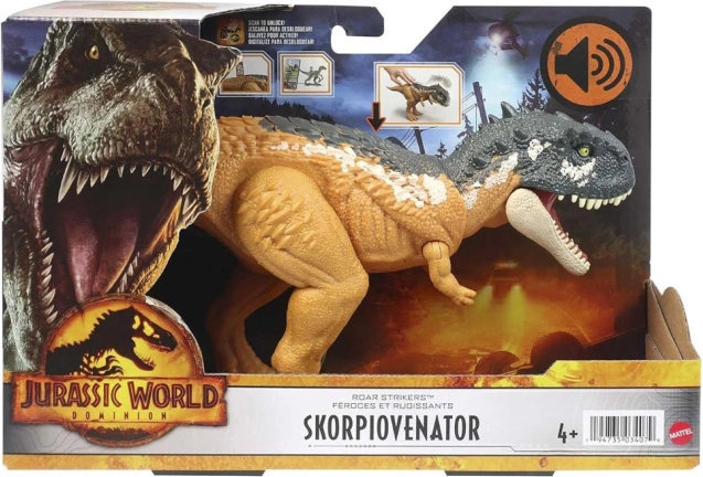 Découvrez la magie du monde Jurassic World Dominion avec le Skorpiovenator de chez Mattel. Ce dinosaure se distingue par ses membres mobiles et ses sons réalistes. Grâce à cela, vous pouvez revivre des scènes du film ou vous plonger dans un jeu créatif.