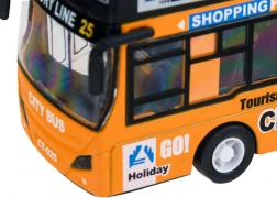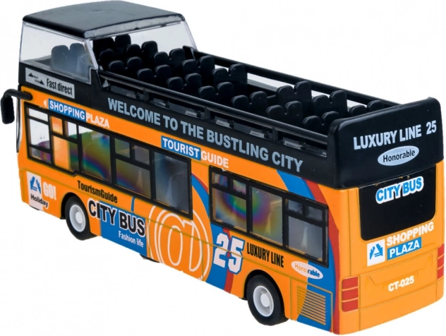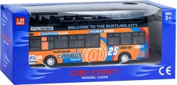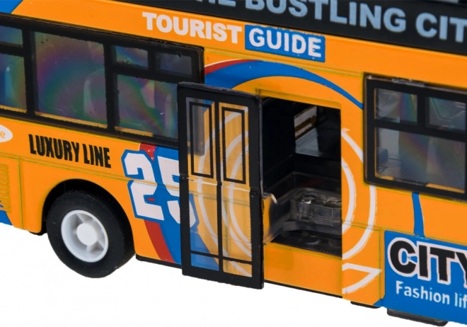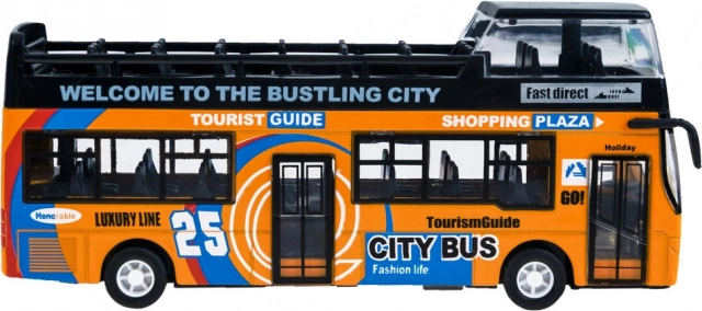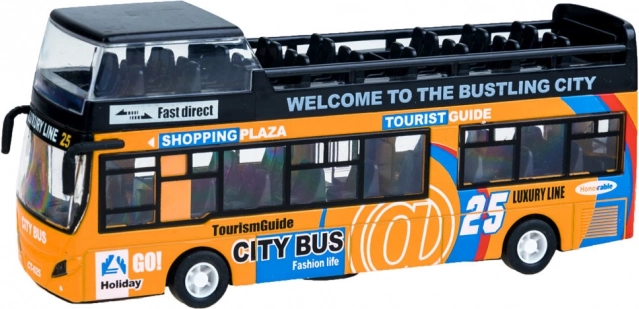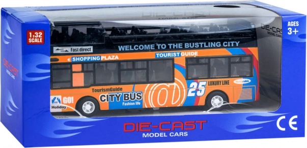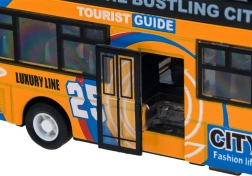 Ce modèle détaillé de bus urbain à impériale ravira chaque enfant. La robuste combinaison de métal et de plastique garantit la résistance, tandis que les portes coulissantes ouvrantes et l’éclairage intérieur apportent une expérience de jeu authentique.