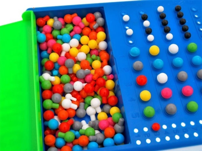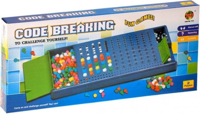 Alternez les rôles de codeur et de décrypteur, utilisez jusqu’à 12 essais et, à l’aide des pions d’évaluation noirs et blancs, dévoilez pas à pas le code secret.