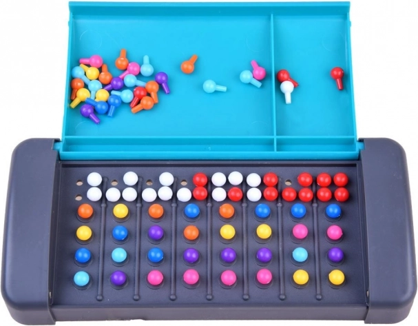 L'un crée un code secret, l'autre dispose de 8 tentatives pour le découvrir. Manches rapides et évaluation claire à l'aide de petits marqueurs.