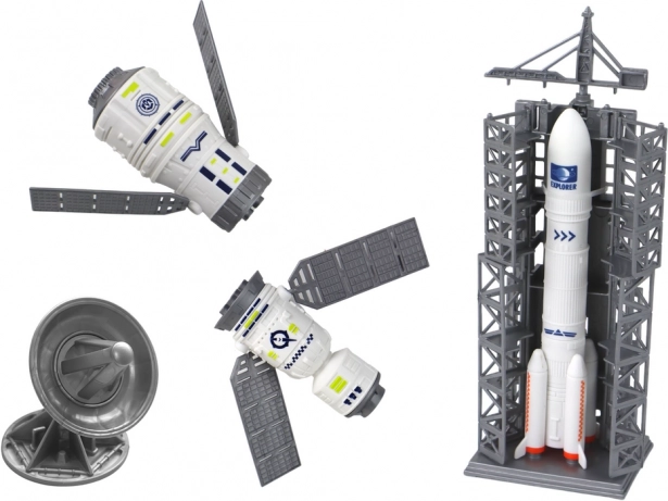 Ce set minutieusement conçu offre aux enfants une expérience authentique des expéditions spatiales. La grande fusée est prête au décollage, le modèle plus petit avec station de lancement permet de rejouer décollages et atterrissages, et les satellites à panneaux mobiles peuvent être placés sur différentes « orbites ».