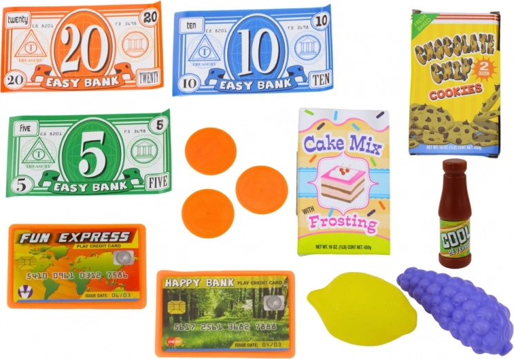 L’ensemble comprend de l’argent de jeu, des billets, des pièces et des cartes de paiement, une excellente occasion d’apprendre à compter l’argent et de développer des compétences interpersonnelles grâce à la simulation d’interactions commerciales.