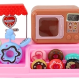 Ce set stimule la créativité et la motricité fine grâce à un comptoir de jeu réaliste avec micro-ondes et assortiment de donuts.