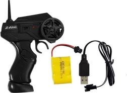 Le contrôleur fonctionne à une fréquence de 2,4 GHz, éliminant toutes les interférences pendant le jeu. Le contrôle est facile grâce au volant et au bouton permettant de diriger la voiture vers l'avant, l'arrière, à gauche et à droite.