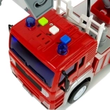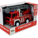Le véhicule est équipé d'une transmission à friction pour un démarrage facile - il suffit de pousser, tirer en arrière et lâcher pour le faire rouler. Il est réalisé à l'échelle 1:20 avec des détails minutieusement réalisés, lui conférant un aspect réaliste. Sur le toit, l'échelle est équipée d'un tuyau de pompier pour simuler les actions de sauvetage.