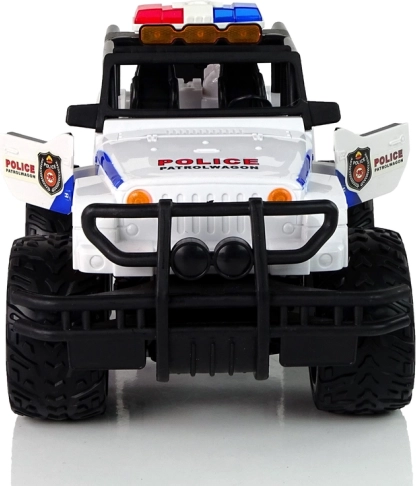 Jouet au design noir et blanc caractéristique, avec de grandes roues et des marquages de police pour imiter à la perfection les interventions réelles.
