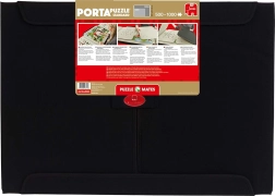 L’emballage comprend deux plateaux séparés pour trier et déposer les pièces. Les bandes Velcro assurent une fixation ferme afin d’éviter tout déplacement pendant le transport. La chemise est conçue pour des puzzles jusqu’à env. 68 × 49 cm (500–1000 pièces).