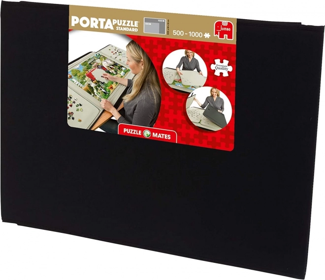PortaPuzzle Standard est la solution idéale pour le montage et le rangement de puzzles jusqu’à 1000 pièces. La chemise offre une surface stable et antidérapante ainsi qu’une fermeture sécurisée, de sorte que les motifs en cours et les pièces individuelles restent exactement à leur place. Grâce à ses dimensions compactes, elle se glisse facilement sous un lit ou se range à côté d’une armoire.