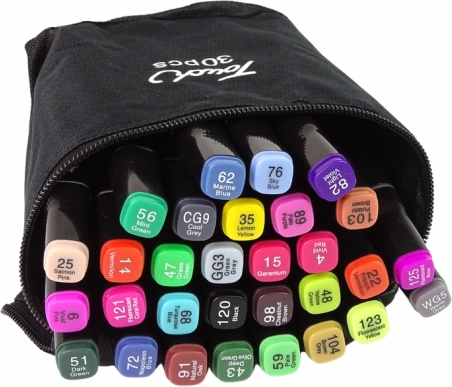 Un étui zippé pratique avec poignée supérieure permet de transporter et de ranger facilement les marqueurs, une solution idéale pour les artistes en déplacement.