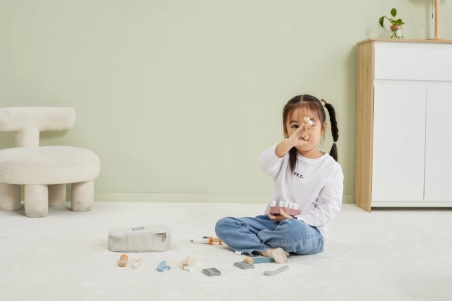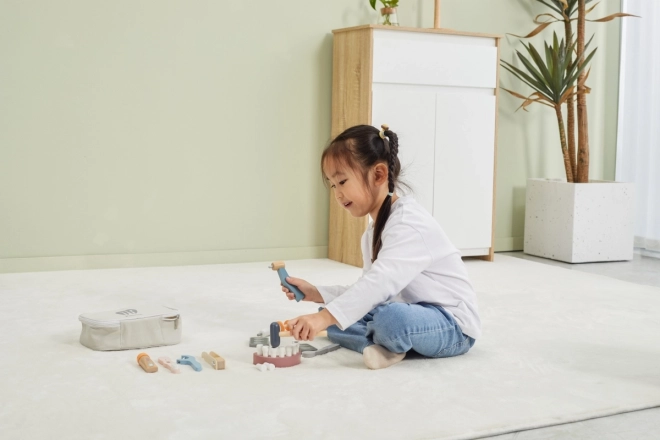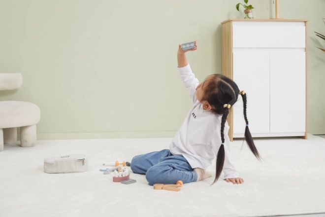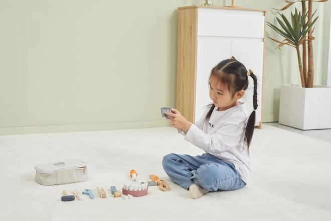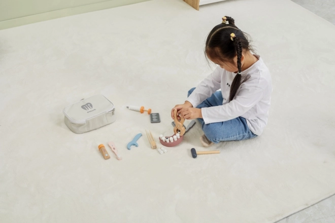 Le tout est rangé dans une sacoche de transport robuste, ce qui rend l’ensemble facile à emporter et à ranger. Le bois verni de qualité et les peintures non toxiques garantissent un amusement sûr et durable. Un cadeau idéal pour les apprentis dentistes.