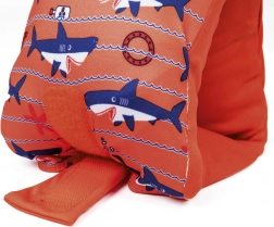 • Excellente visibilité – orange vif et adorables motifs de poissons/requins.