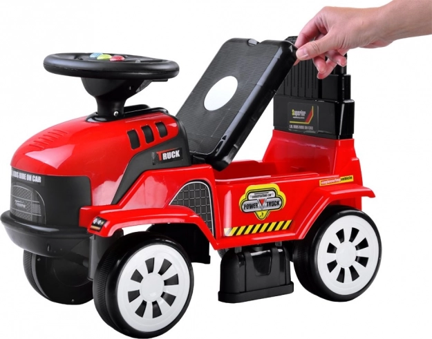 Le porteur tracteur est un excellent choix comme premier véhicule pour les enfants. Grâce à ses dimensions compactes, il convient à l’appartement comme au jardin. Le volant avec boutons joue des mélodies joyeuses accompagnées d’effets lumineux (alimentation 2× AA, non incluses). Le siège avec dossier assure confort et bonne posture, tandis que la butée arrière protège contre le basculement vers l’arrière.