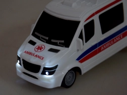 Ce modèle d'ambulance se vante d'un design réaliste incluant des détails comme les fenêtres, portes et symboles médicaux sur les côtés.