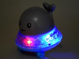 Hors de l’eau, posez la baleine sur la plateforme, basculez l’interrupteur on/off et regardez-la rouler au rythme d’une musique enjouée avec des effets lumineux.