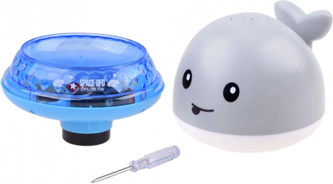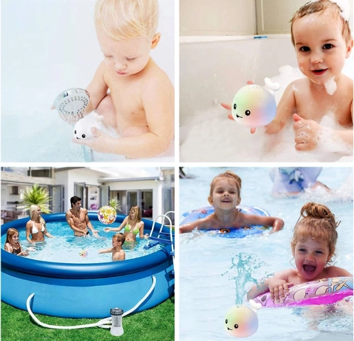 Adorable baleine d’eau qui transforme chaque bain en moment ludique. Une fois immergée, elle s’active automatiquement, gicle l’eau comme une mini-fontaine et s’accompagne de LED colorées. Placée sur sa plateforme, elle se met en route, bouge au rythme d’une musique joyeuse et s’illumine – idéale pour la baignoire, la piscine ou les jeux dans la salle de bain.