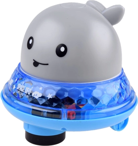 Ce jouet astucieux combine plaisir aquatique, mouvement et lumières. Au contact de l’eau, la baleine déclenche automatiquement un jet d’eau et s’illumine de couleurs vives que les enfants adorent. Hors de l’eau, il suffit de la poser sur la plateforme roulante fournie, d’actionner l’interrupteur et de la regarder se déplacer au sol avec musique et effets lumineux.