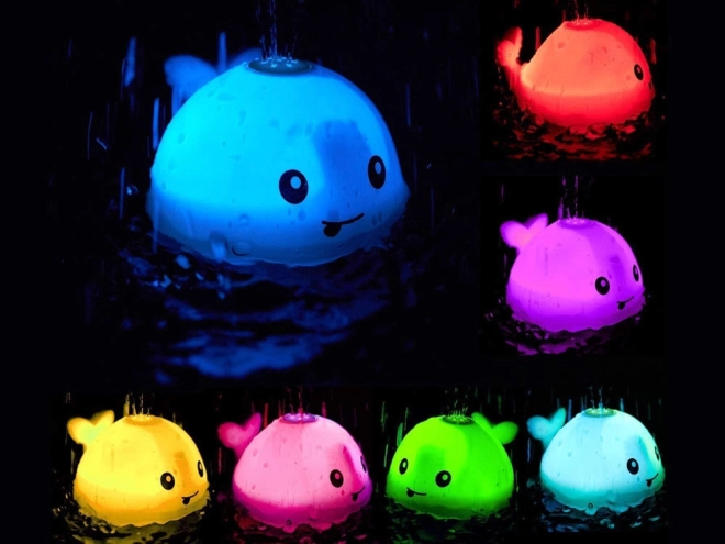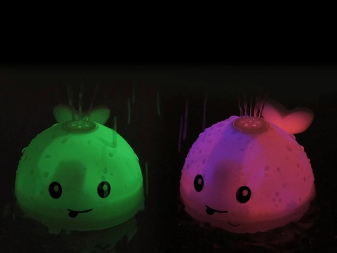 Au contact de l’eau, la baleine se déclenche toute seule et crée un mini jet d’eau aux couleurs changeantes – captivant et amusant à chaque bain.
