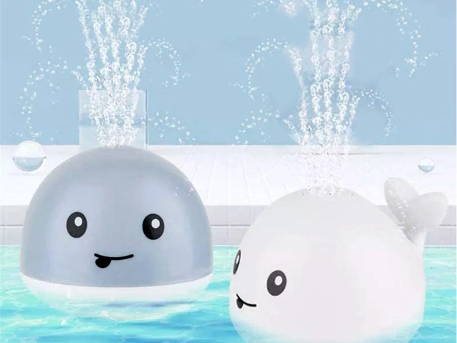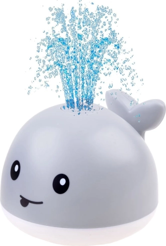 Baleine aquatique avec fontaine et plateforme roulante pour le bain – Gris