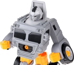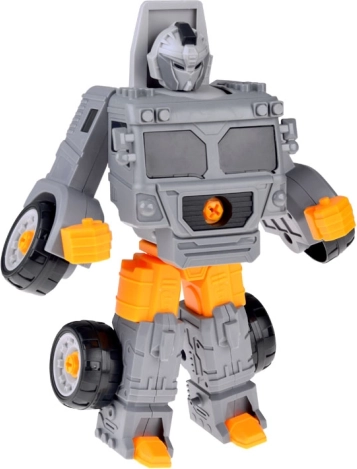 La transformation est simple et amusante : relevez les roues avant sur les côtés (elles deviennent des bras), libérez la tête, la partie avant de la cabine devient le torse et, en tirant l’arrière du véhicule, vous formez les jambes. Il n’est pas nécessaire de dévisser les roues, mais cela peut constituer un défi supplémentaire pour encore plus de plaisir.
