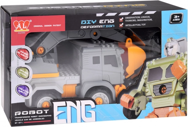 Ce modèle ingénieux combine un véhicule de chantier et une figurine d’action en un seul jouet. Les enfants peuvent démonter et remonter les pièces à l’aide du tournevis fourni, entraînant leur motricité fine et leur logique. La cabine, le bras de la pelle et le godet sont mobiles, le robot tient debout une fois assemblé et possède des bras et des jambes articulés.