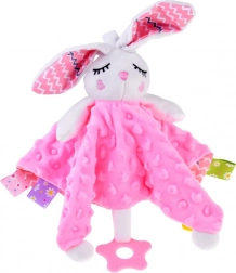 Adorable doudou en forme de lapin avec couverture toute douce, étiquettes colorées et anneau de dentition en silicone pour apporter calme et réconfort au bébé. Favorise le développement sensoriel, propose des textures variées, des éléments bruissants et couineurs et convient parfaitement au lit, à la poussette et au siège auto.