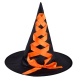 Classique chapeau de sorcière noir avec ruban satiné orange, pour un look authentique qui garde parfaitement sa forme.