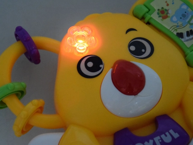 Pour développer le toucher et la motricité fine, le jouet intègre des perles à faire glisser, une molette rotative et une bille à perles qui émet un agréable son de hochet. Le changement de mode se fait via un curseur situé dans l’oreille de l’ourson, accompagné d’une courte mélodie.