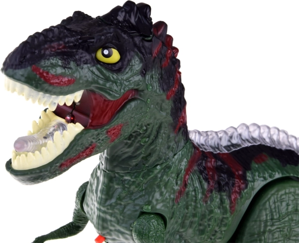Le dinosaure RC sait avancer et reculer, effectuer des rotations à 360°, rugir et proposer des modes danse amusants avec musique. Après ajout d’eau dans le réservoir de la tête, une vapeur froide, éclairée par LED rouge, s’échappe de la gueule comme un feu ardent – en toute sécurité et sans odeur.
