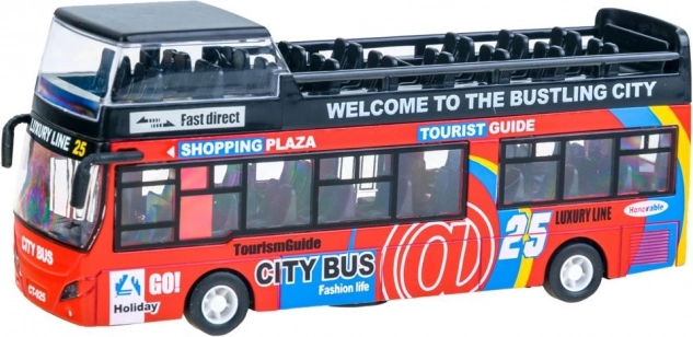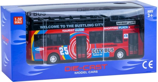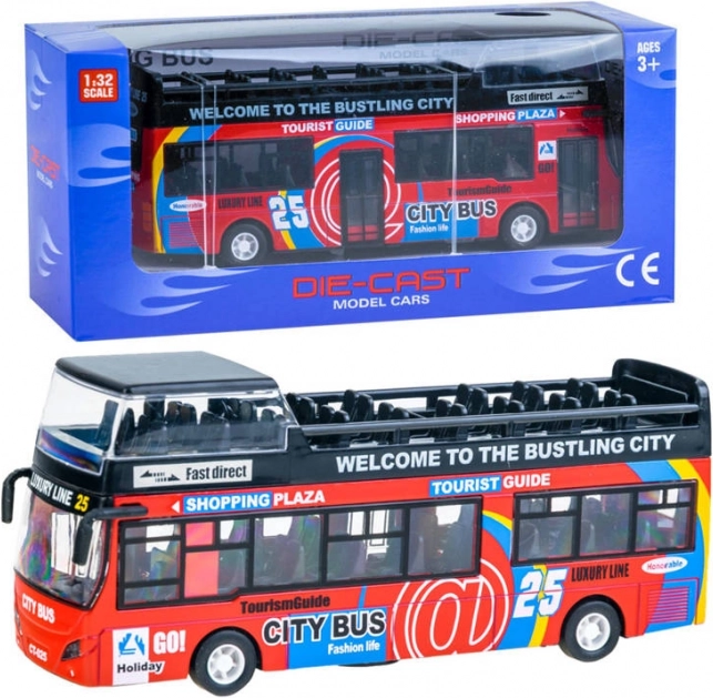 Réalisme assuré avec cet autobus à impériale en métal doté de portes coulissantes ouvrantes, de lumières et de sons qui raviront chaque petit conducteur. Il possède une traction à friction (pull-back), des effets lumineux, des sons de moteur, de conduite et de klaxon ainsi qu’une structure robuste en métal et plastique.