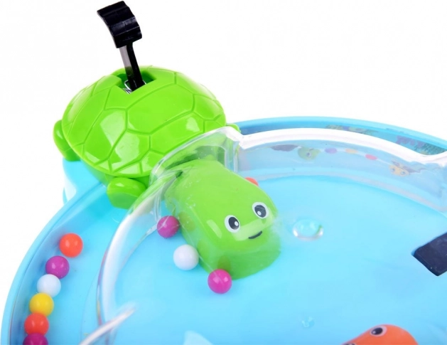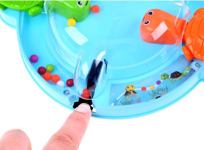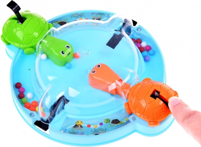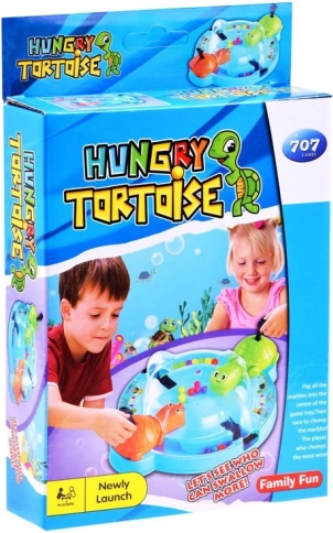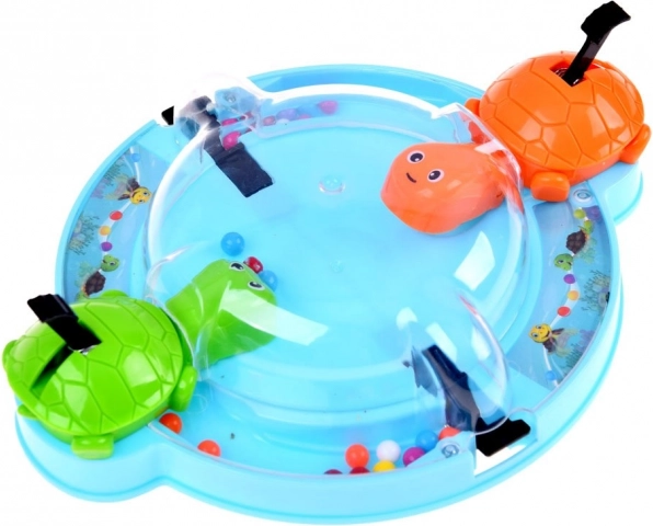 Le jeu entraîne les compétences, les réflexes et apprend aux enfants à reconnaître les couleurs. Il est idéal pour un jeu en groupe avec des amis ou pour passer des moments agréables en famille. Tout le monde s'installe confortablement autour de la base circulaire, appuie sur le levier, ce qui fait ouvrir la bouche des tortues pour attraper les billes qui roulent.