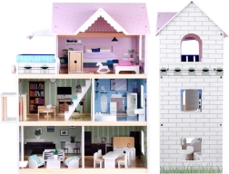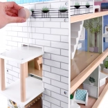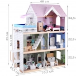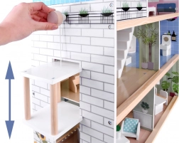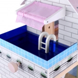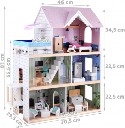 Cette magnifique maison de poupée vous apporte un design réaliste et élégant qui ravira chaque enfant. La maison dispose de trois étages remplis de pièces détaillées : chambre, salon, salle de bain, cuisine et salle de séjour. Un ascenseur mobile et une élégante piscine sur la terrasse ajoutent de l'attractivité et offrent un espace pour le jeu créatif.