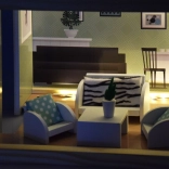Un ascenseur unique et une piscine sur la terrasse ajoutent une dimension interactive au jeu, permettant divers scénarios d'histoires.