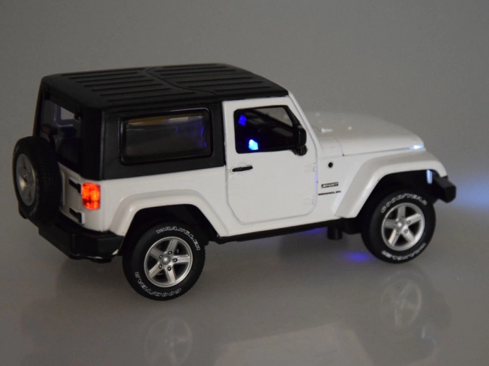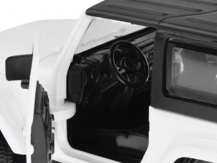 Jeep Wrangler 1:32 est un superbe modèle axé sur le détail, offrant des effets sonores et lumineux réalistes. Le véhicule dispose de portes et d’un capot ouvrants et est équipé du système « pull back » qui lui permet de se déplacer sur une surface lisse. L’ouverture des portes déclenche une alarme avec feux clignotants, renforçant le plaisir de jeu. La représentation du moteur et les détails de l’habitacle ajoutent une touche d’authenticité.
