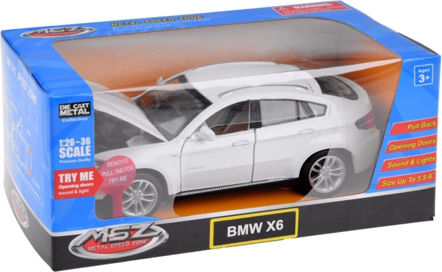 Réplique parfaite de la BMW X6 à l’échelle 1:32, qui enrichira votre collection de modèles de voitures. Ce véhicule soigneusement réalisé ravira chaque petit conducteur.