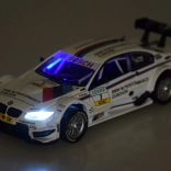 Cette voiture de course finement réalisée avec design sous licence BMW M Performance offre des détails réalistes, des pneus en caoutchouc et un châssis en plastique pour une bonne résistance au jeu. À l’ouverture des portes, vous entendrez le son de déverrouillage, et une pression sur la carrosserie déclenche le démarrage et le fonctionnement du moteur. Les feux avant et arrière ainsi que le tableau de bord rétroéclairé s’illuminent, pour des virées comme sur une vraie piste DTM.
