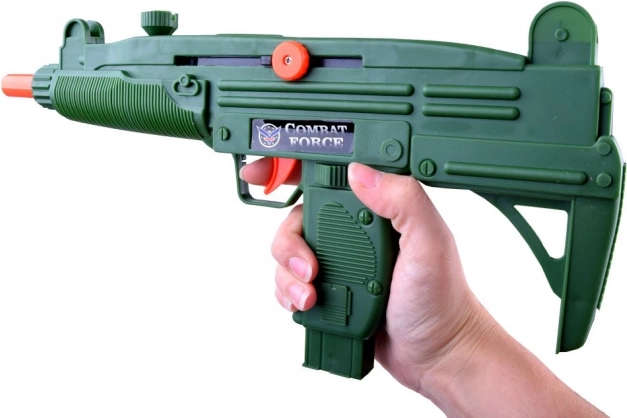 Pistolet court avec effets sonores (piles AG13 incluses) et fusil à armement manuel pour des expériences d’action en toute sécurité.