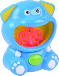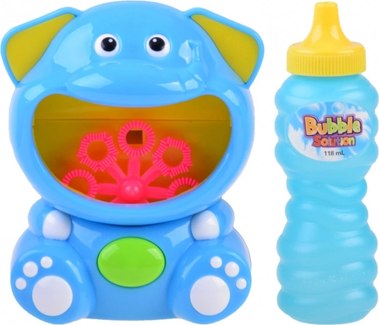 Versez la solution dans l’ouverture, appuyez sur le bouton sur le ventre de l’éléphant et regardez le disque tourner tandis qu’un flux de bulles irisées s’envole.